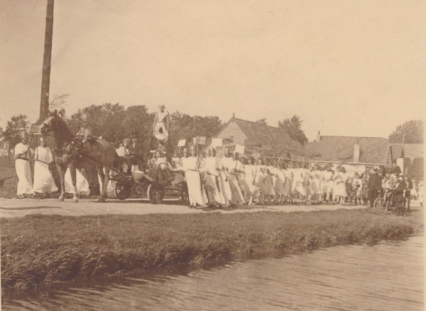 3784g optocht met dame in klederdracht JB - retour