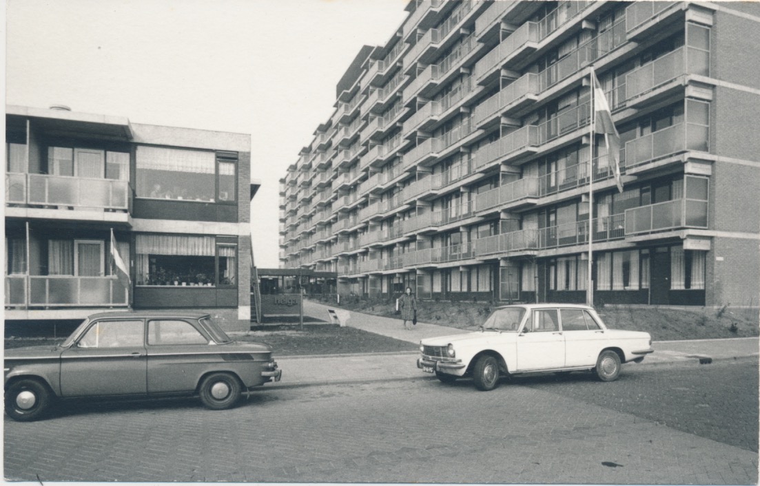 Bejaardencomplex en dienstencentrum Helga Flat aan de Hendrick Staetsweg in wijk Lage Land in de Prins Alexanderpolder.