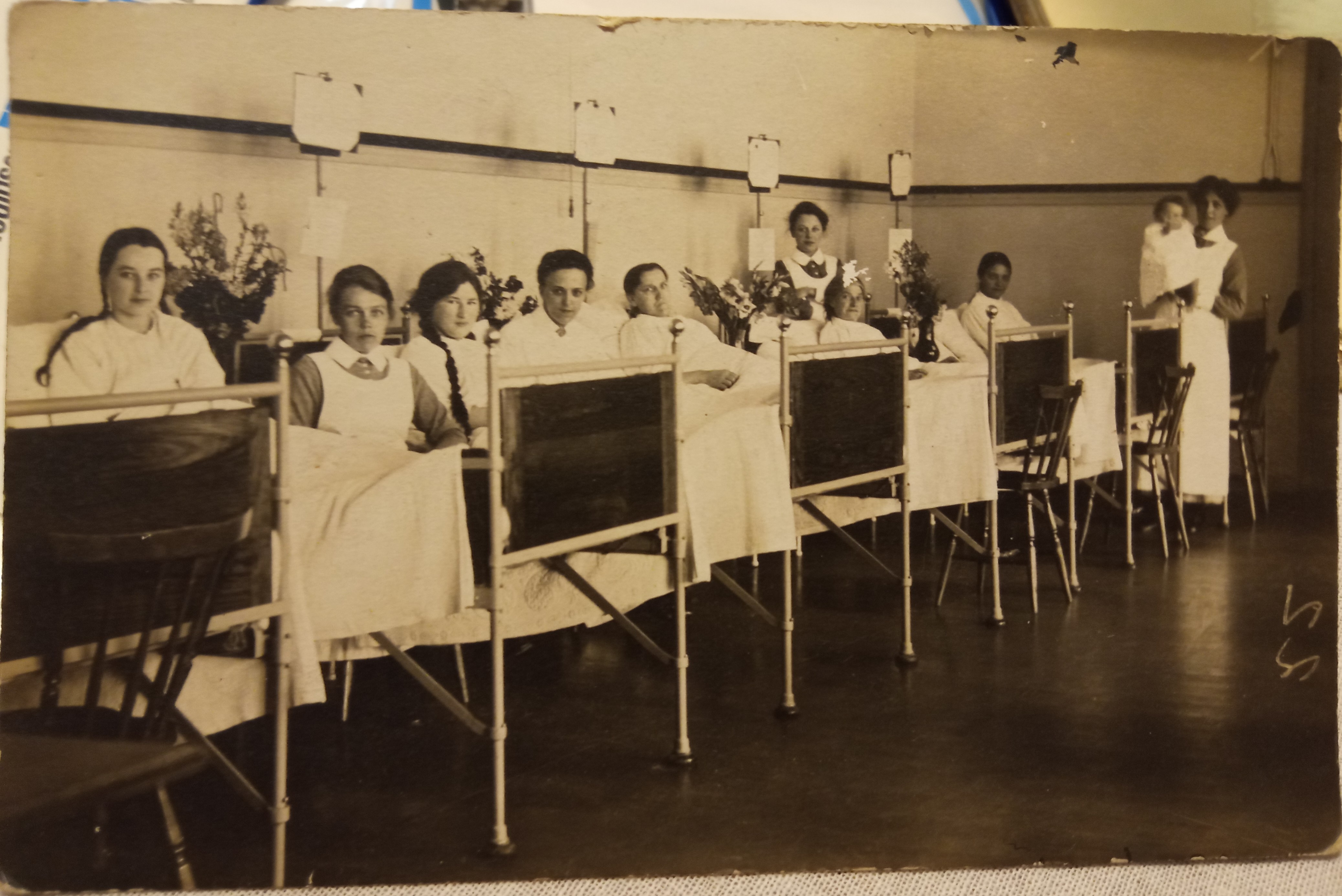 Ik voeg alle foto's die ik heb van Mien toe; Ik weet niet of ze allemaal op dezelfde locatie genomen zijn; kijk bijvoorbeeld maar naar de verschillende modellen ziekenhuisbedden op de tweede en vierde foto. Mijn vermoeden is daarom dat de tweede foto ergens anders genomen is. Echter, ik denk toch dat het beter is dat ik ze allebei hier neerzet.