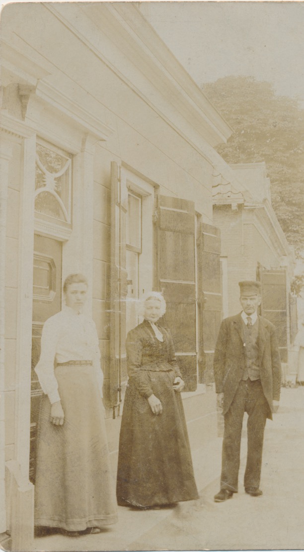 4994g 3 mensen voor een huis, wsch. Heukelum HAV
