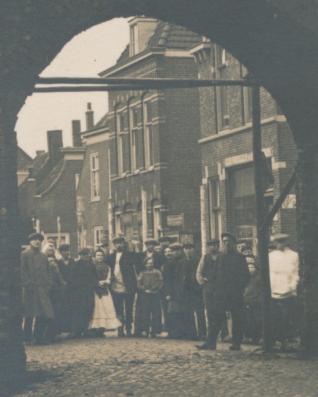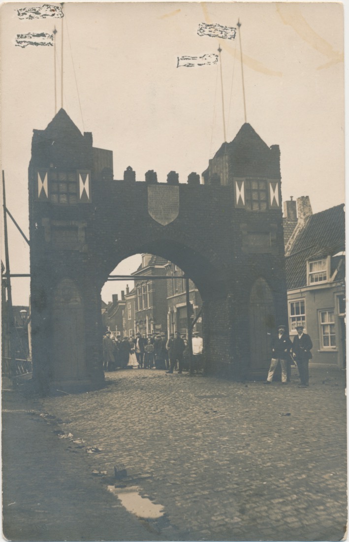 Dit is de Turfpoort in de Weststraat in Scheveningen bij de herdenking van 100 jaar onafhankelijkheid in 1913
