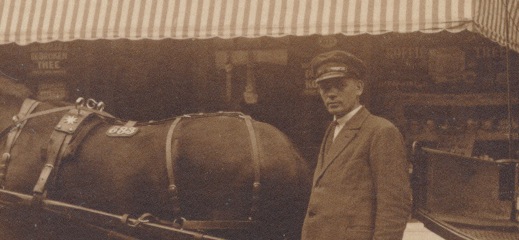boven de 'koets' aan de gevel een bordje met Bruinkolen Briketten