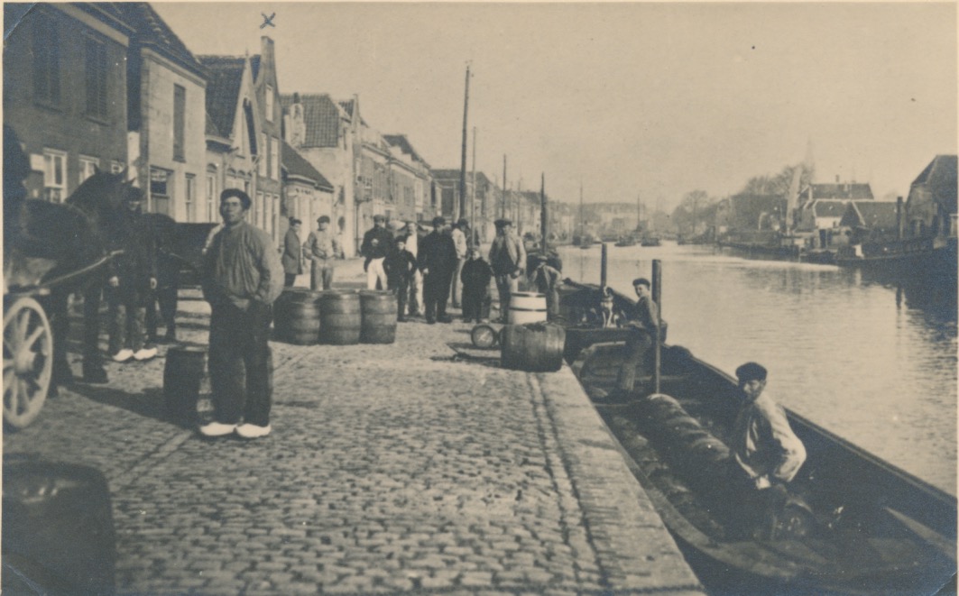 Dit is het Zuideinde in Delft, gezien in de richting van de stad. Zie ook: http://www.plaats.nl/delft/fotos/19223/delft-1900/