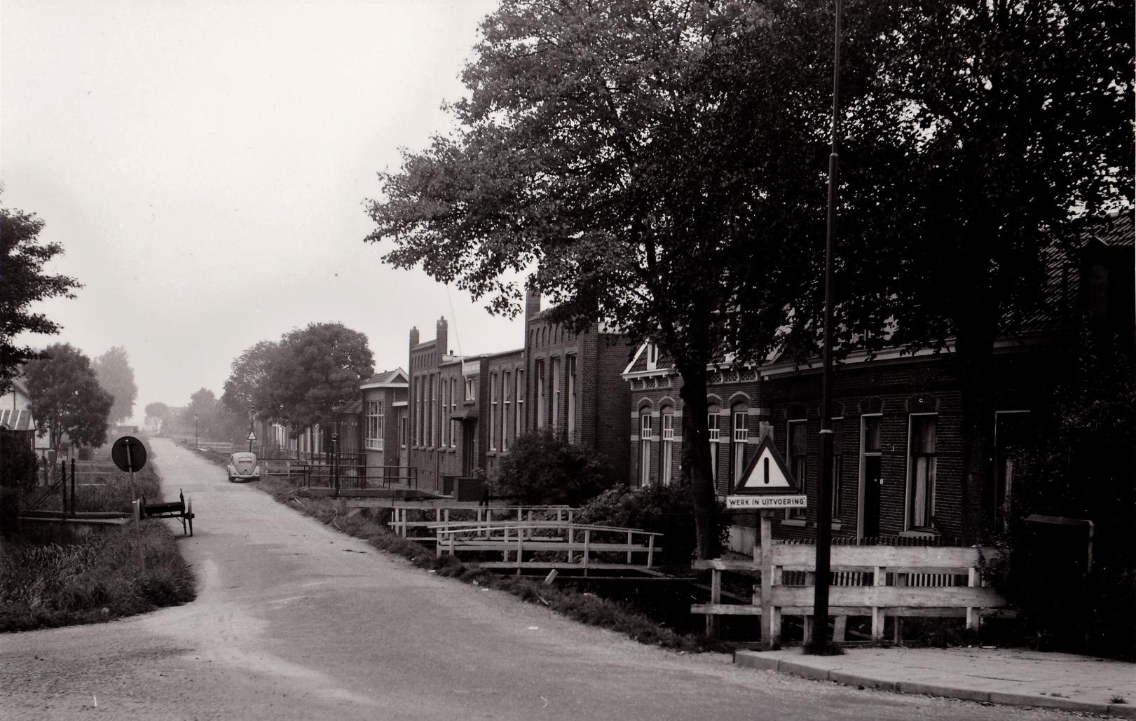 Dit is de Onderweg je kijkt in de verte op de oude Burgemeesters woning "Plasrode'" Links zie je de ingang van de school met de bijbel ( Rehobothschool )