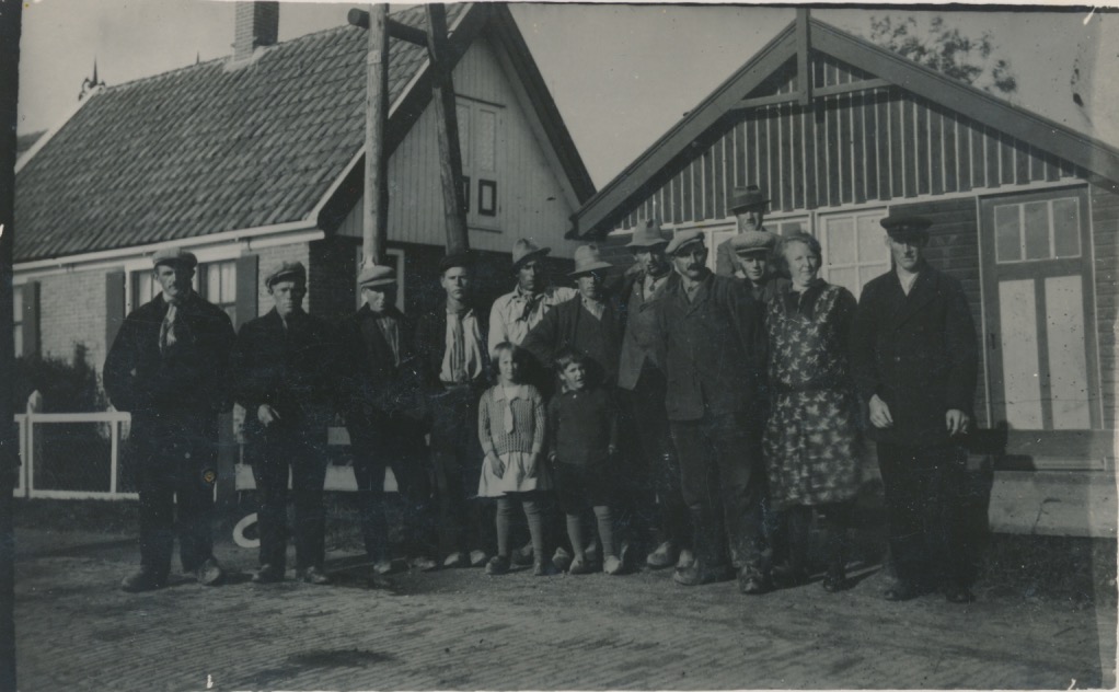 5214 groep mensen voor twee vrijstaande gebouwtjes