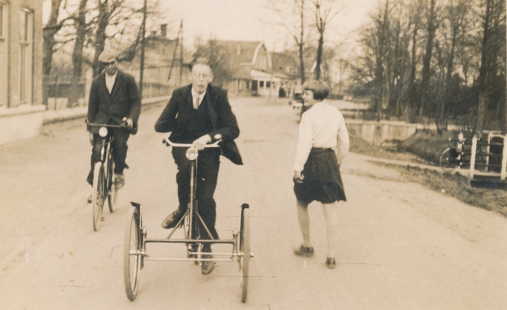 mogelijk is de man ietwat gehandicapt, vanwaar het aangepaste model fiets
