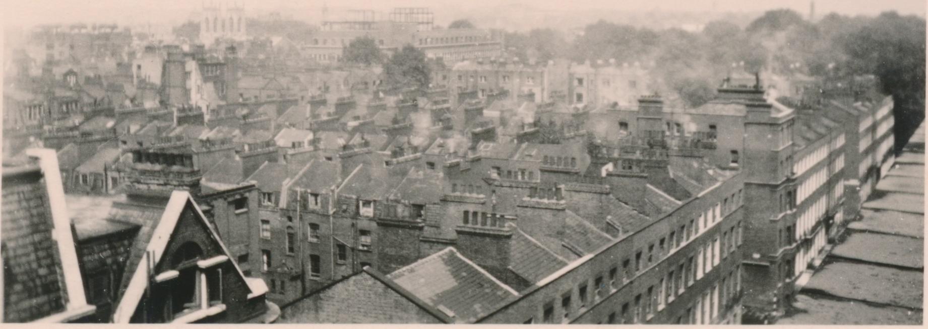 In de verte de Schotse/Presbyteriaanse kerk aan Regent Square, die in 1945 beschadigd is door een V2-aanval en rond 1950 is afgebroken (http://media.gettyimages.com/photos/wor ... id79043099)