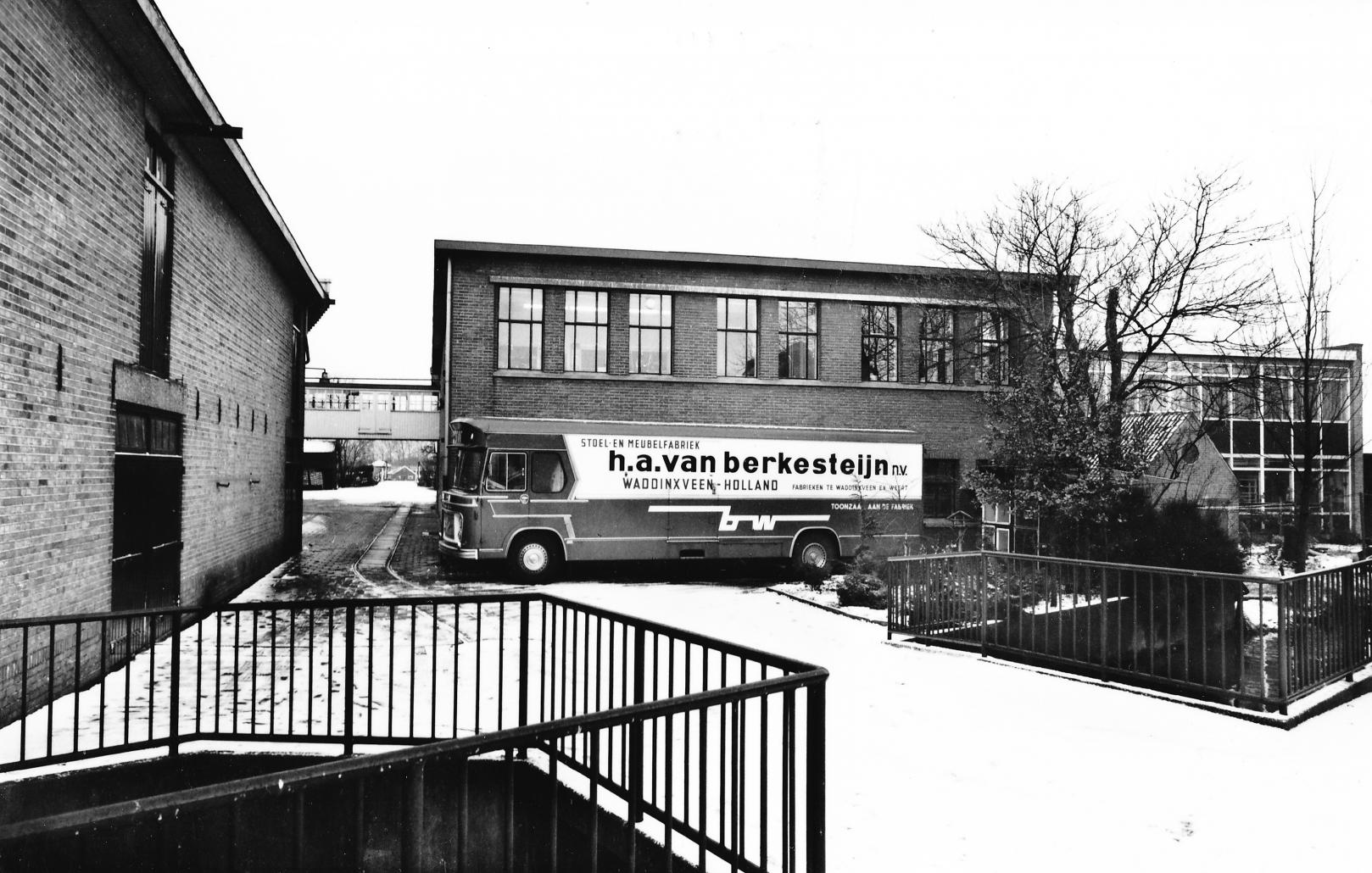 Deze week kreeg ik een paar foto’s van Meubelfabriek / toonzaal Van Berkesteijn. De fabriek lag aan de zuidkant van de Coenecoopbrug. Nu zie je nog een restant aan de Kanaaldijk waar tuinmeubelen worden verkocht. Op een van de foto’s staat de vrachtwagen van Van Berkesteijn, maar deze foto is niet in Waddinxveen gemaakt. Er staat op de vrachtwagen dat zij ook in Weert een toonzaal hadden, maar daar heb ik niets kunnen vinden via internet.