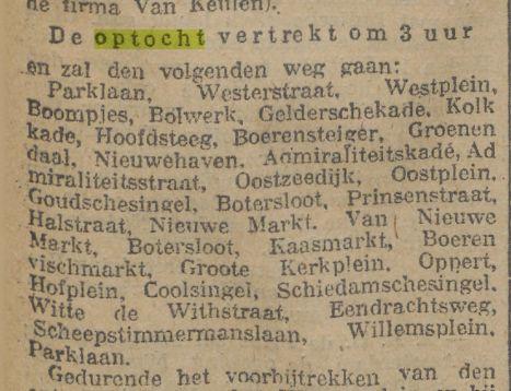 De route van deze optocht in Rotterdam staat ook genoemd in het artikel