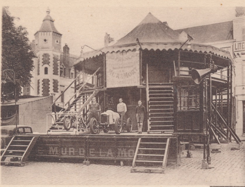 onbelijnde gedrukte reclamekaart van kermisattractie: de gebroeders Coutard