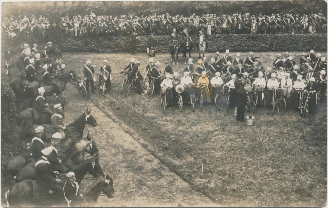 Dit geeft mij sterk de sfeer van vlak na de oorlog. Toen waren o.a. in Den Haag ruiterfeesten en behendigheids wedstrijden voor kinderen met versierde fietsen. Dit herken ik niet als Den Haag, maar in andere plaatsen zal ook wel zoiets georganiseerd zijn geweest. Dergelijke evenementen waren op Houtrust, Malieveld en Alexanderveld. Hier waren ook de politie en brandweer van de partij, o.a. demonstraties met paarden en motoren met zijspan.