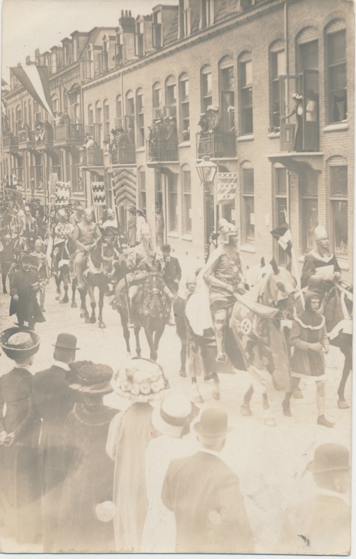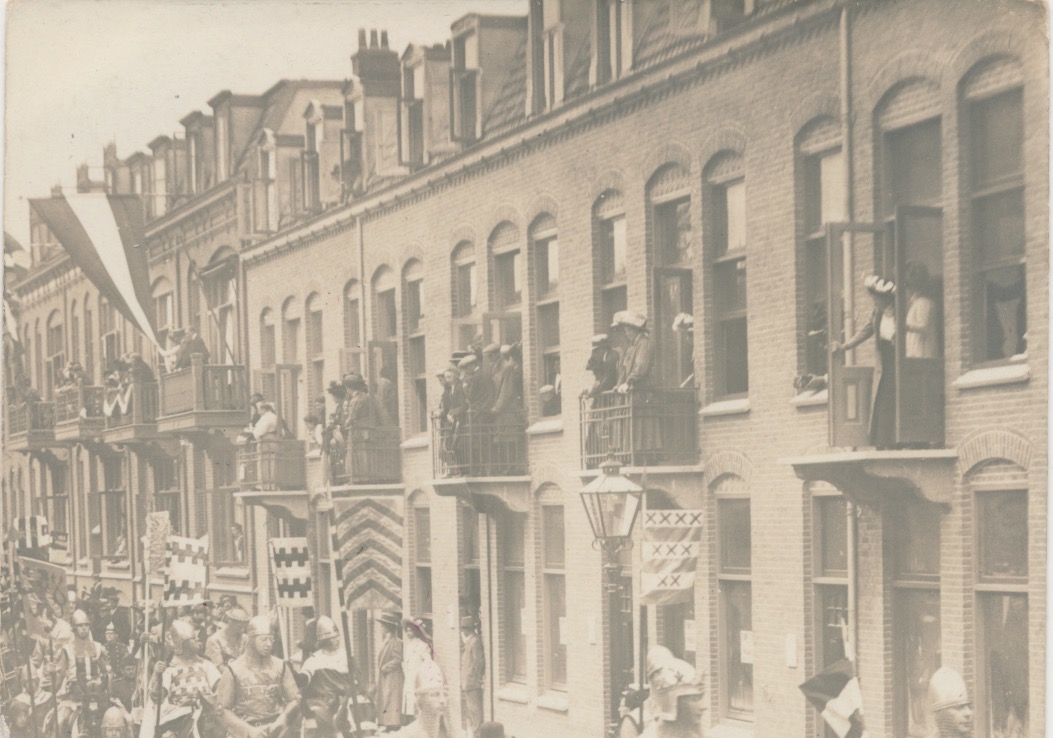 5318 optocht langs gevelwand met balkonnetjes in wsch. Utrecht