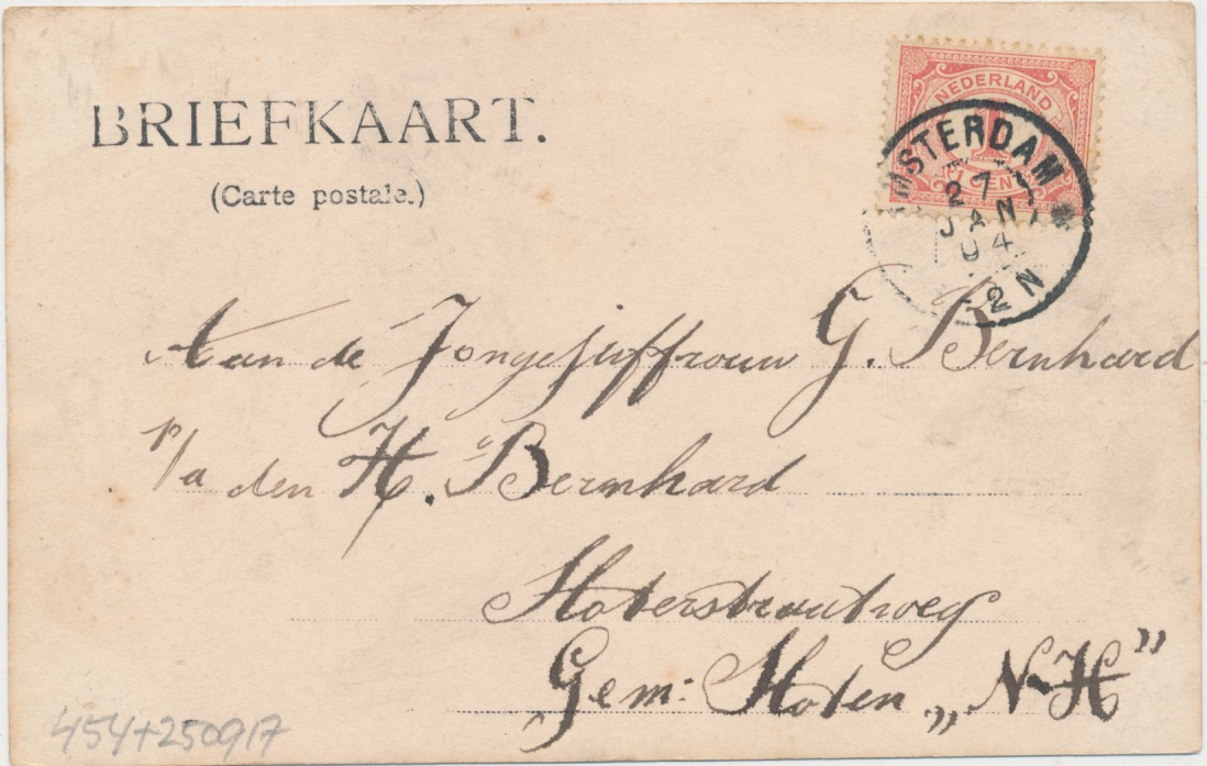 belijnde gelopen fotokaart, gestempeld Amsterdam 1904
