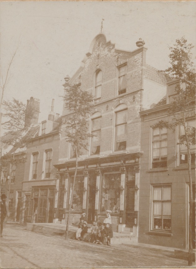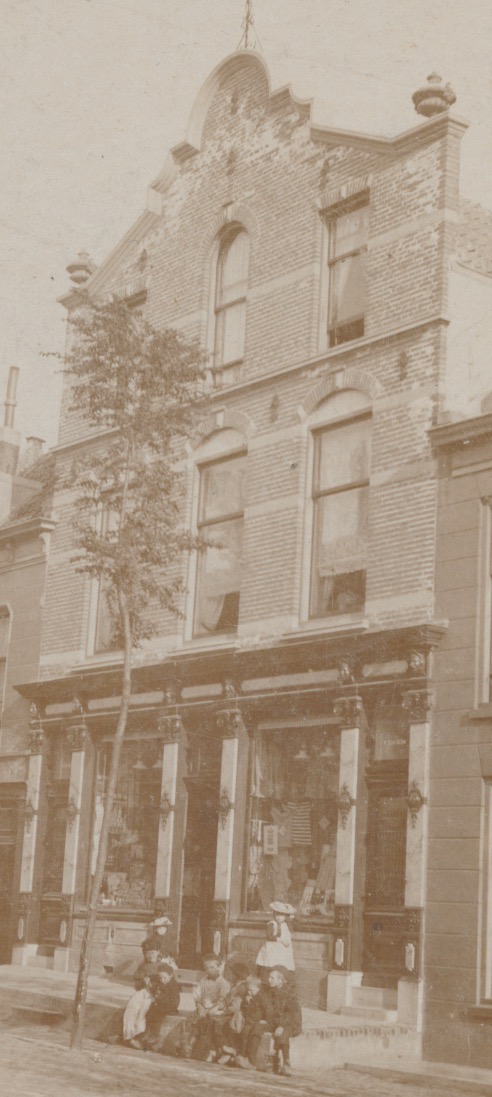 ik vermoed dat de middelste van de drie deuren toegang geeft tot de winkel met de twee etalages