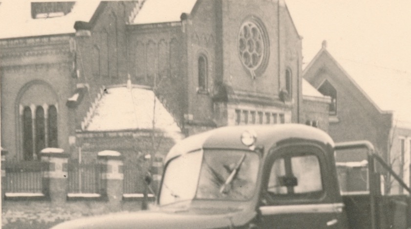 5509 vrachtwagen merk Magirus-Deutz voor kerkgebouw