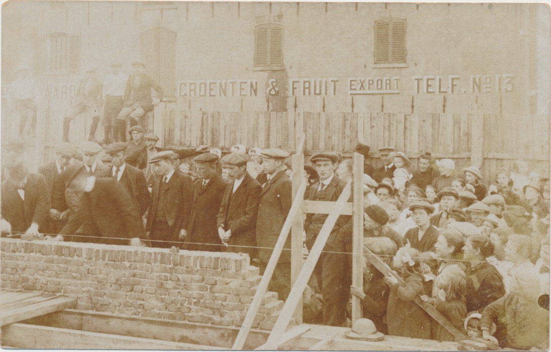 Henk Huls, daar heb je helemaal te pakken, waar onze speurtocht naar op zoek was. Top dat we nu ook weten dat hier de eerstesteenlegging voor de nieuwbouw van de in 1919 gebouwde Maranathakerk aan de Monsterseweg 12 in beeld wordt gebracht. Het plaatje is dus helemaal compleet, op de voorgrond de actualiteit van de kerk en op de achtergrond het pakhuis. Hartelijk dank voor je aangedragen oplossing.