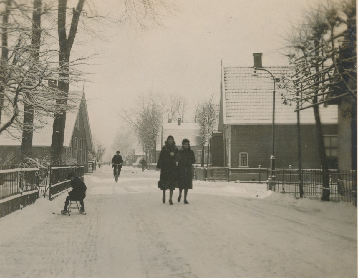 Gezien de gérende verkaveling (niet loodrecht op de straat), de gevels en de geveltekens kan dit eigenlijk alleen in Vriezenveen zijn, w.s. Westeinde in westelijke richting, maar weet nog niet precies waar.