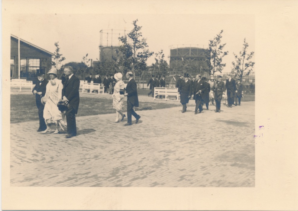Andere mogelijkheid: het bezoek aan de Zuiderzee-visserijtentoonstelling in Enkhuizen. Volgens kaartje hier lag de gasfabriek er redelijk in de buurt: http://uitdeoudedoos.kroniekvanenkhuize ... onstelling . Zie ook de diverse foto's van de koningin. Volgens mij draagt ze hetzelfde.
