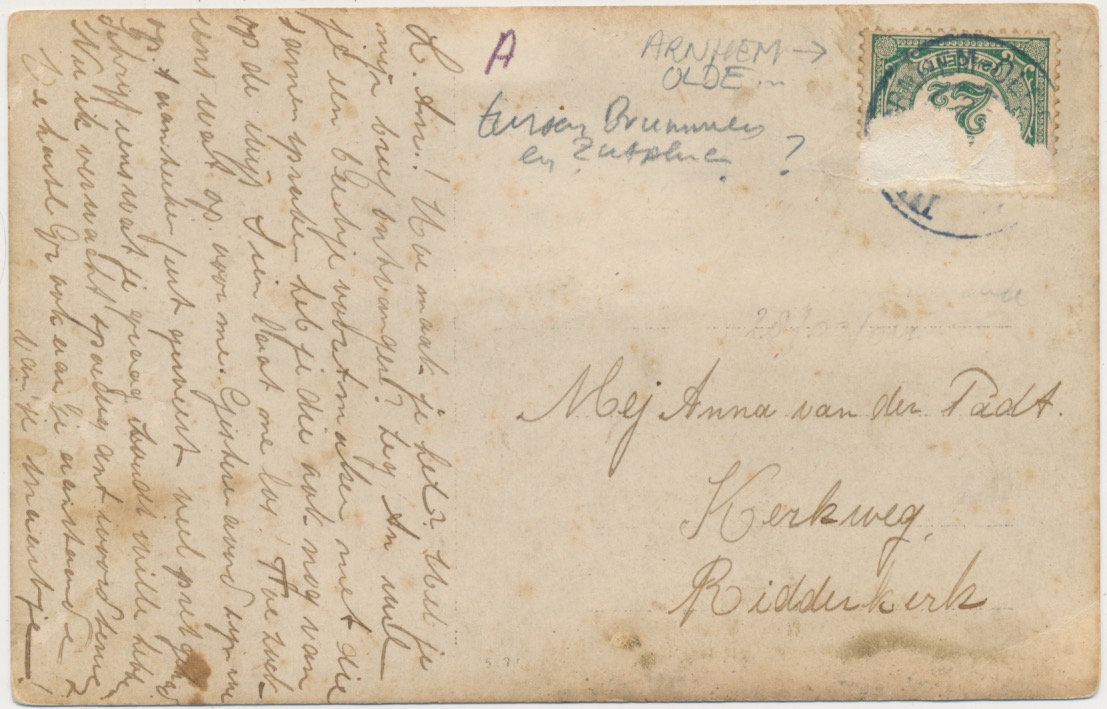 belijnde gelopen fotokaart met stempel (wsch.) Arnhem-Olde...