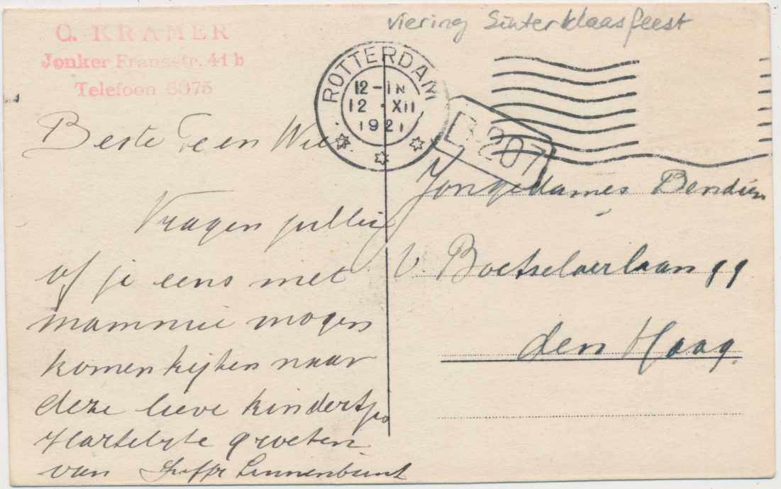 de afzender is Juffr. Linnenbrink (niet gevonden in mijn adresboeken Rotterdam)
