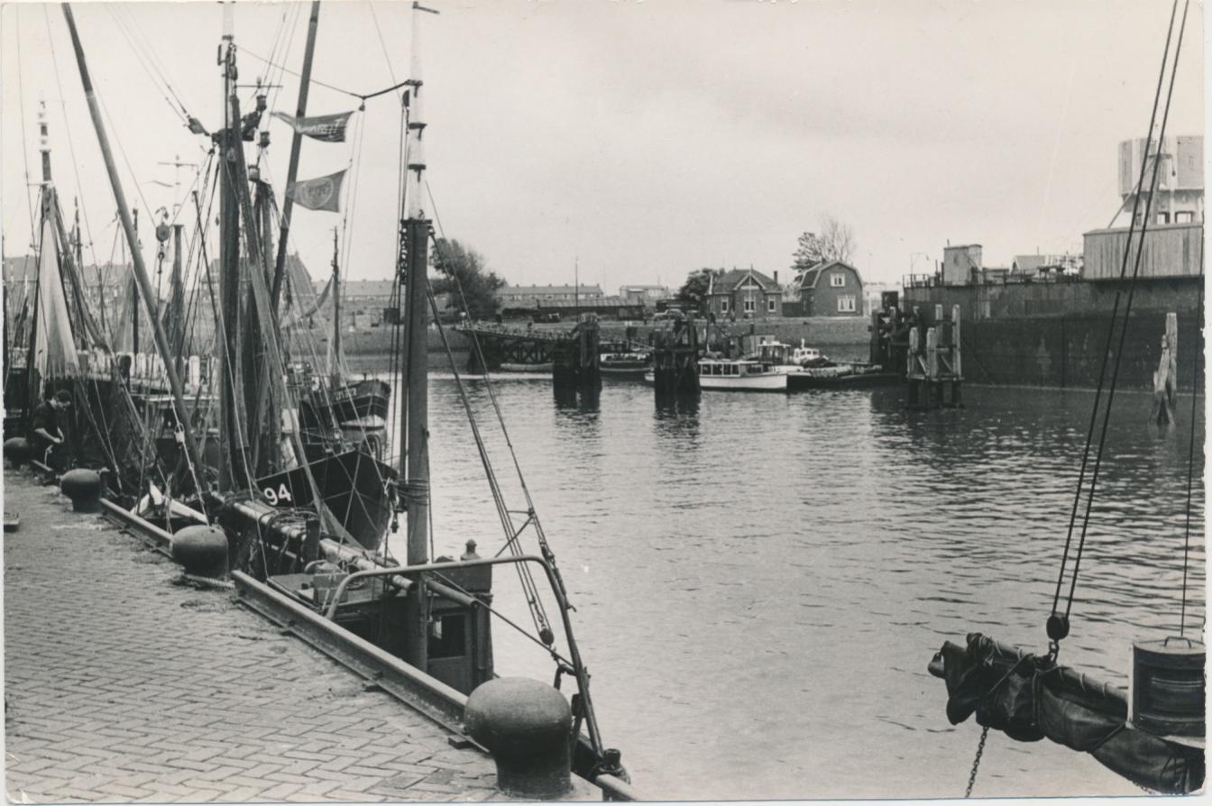 Vissershaven vanaf het Sluisplein te IJmuiden.