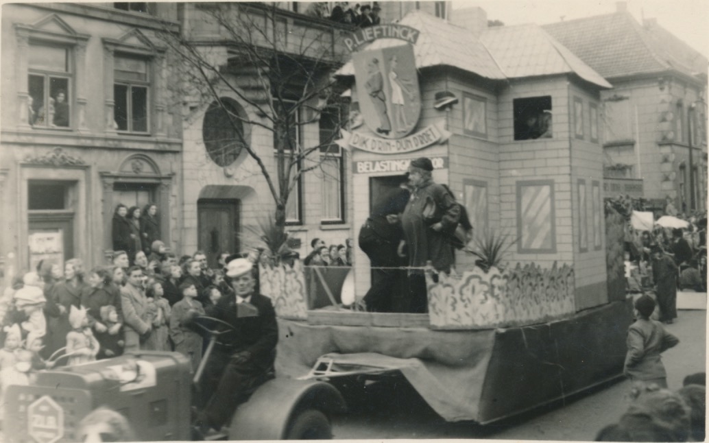 Is de tekst rechts achter de carnavalswagen te lezen op het origineel?