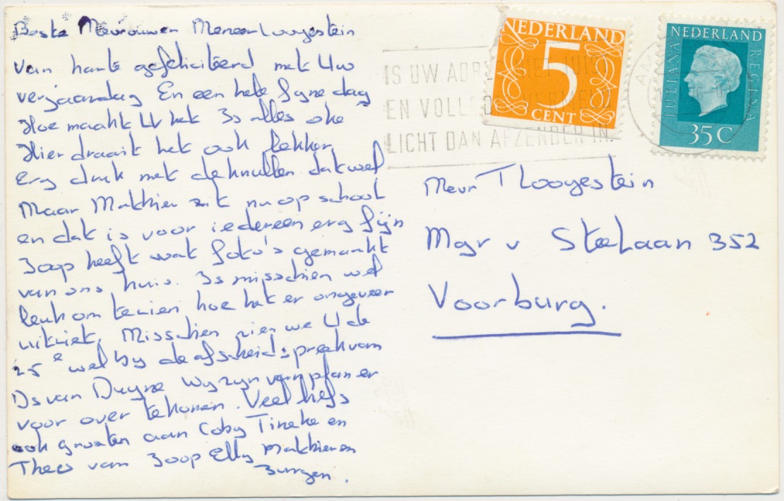 "Misschien zien we u de 25e wel bij de afscheidspreek van Ds. van Duyne".