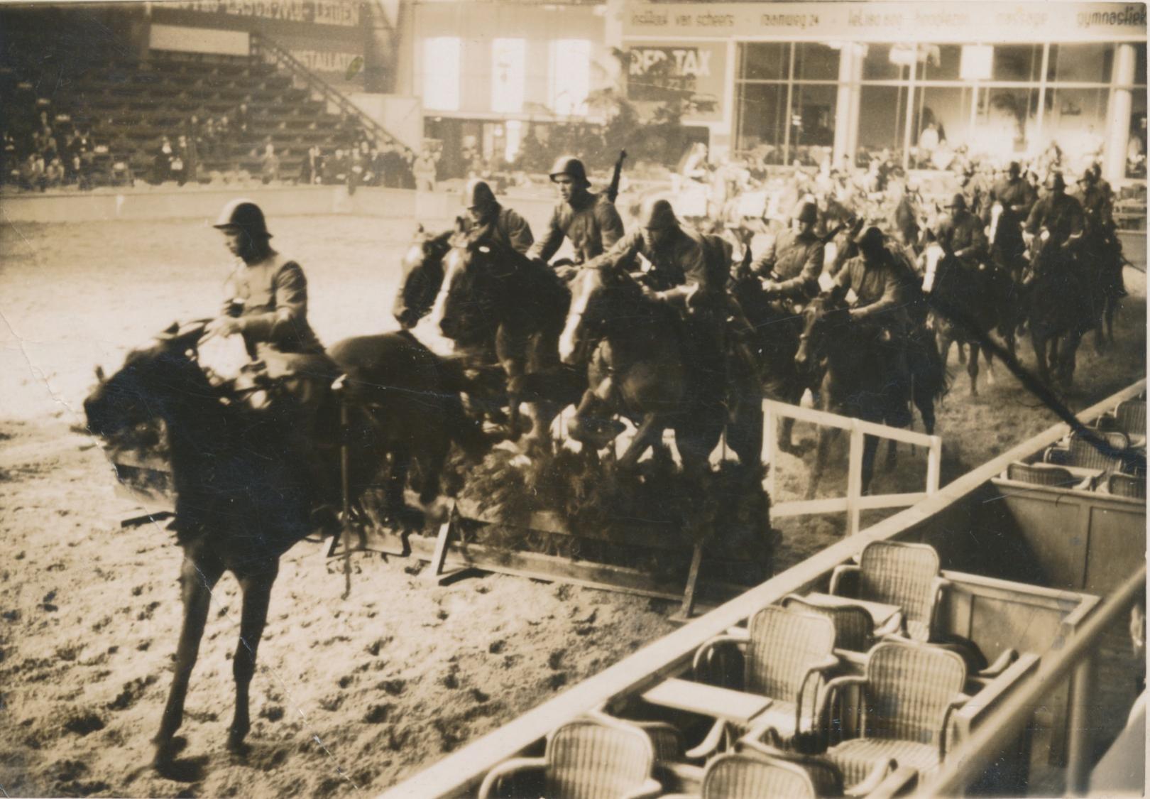 6011 hal met militairen te paard over hindernis, wsch. Den Haag