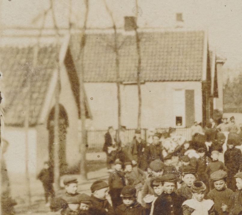 Mogelijk de Molenstraat, met op de achtergrond de "schutterspomp":