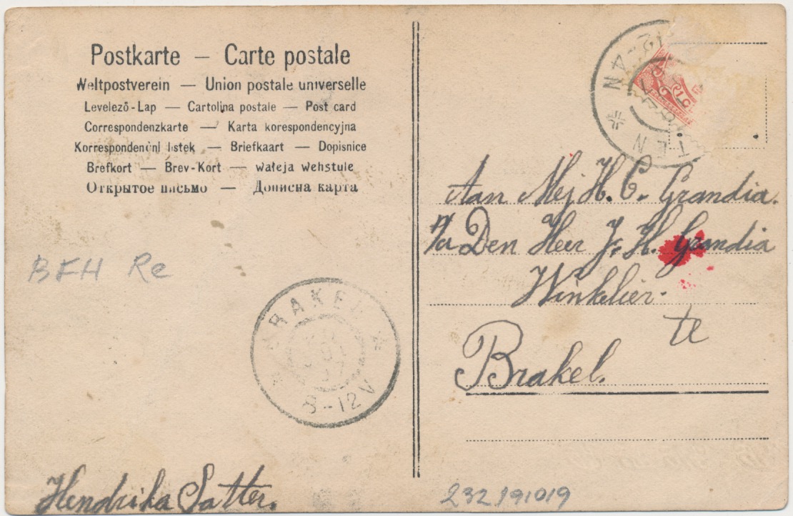 afzendster is Hendrika Satter, verzonden naar een winkelier te Brakel