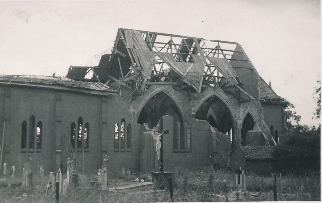 Ik ben allengs ook gaan twijfelen. Maar het lijkt mij toch wel in die buurt. Ik heb een beetje rondgegoogled en kwam op een aantal foto's uit die door Unifoto gemaakt zijn van oorlogsschade in die streek. Toen kwam ik die foto tegen. Zie http://www.netwerkoorlogsbronnen.nl/ of http://www.beeldbankwo2.nl/ en zoek op Unifoto.