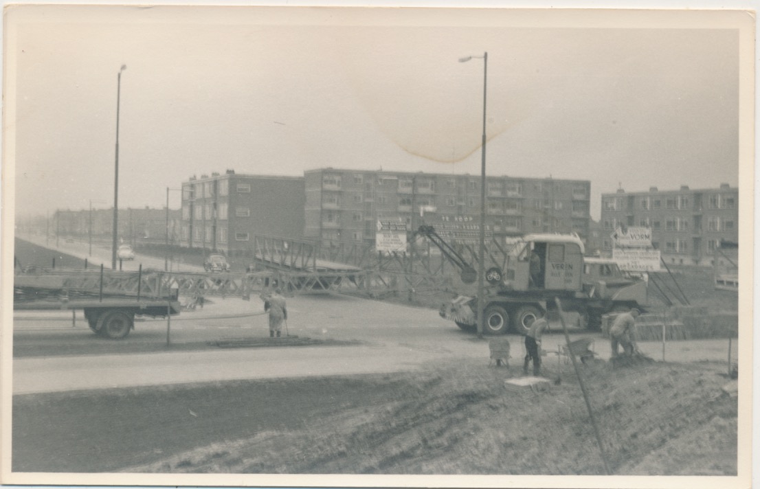 6165 serie van 14 fotokaarten inzake het aanbrengen van een loopbrug