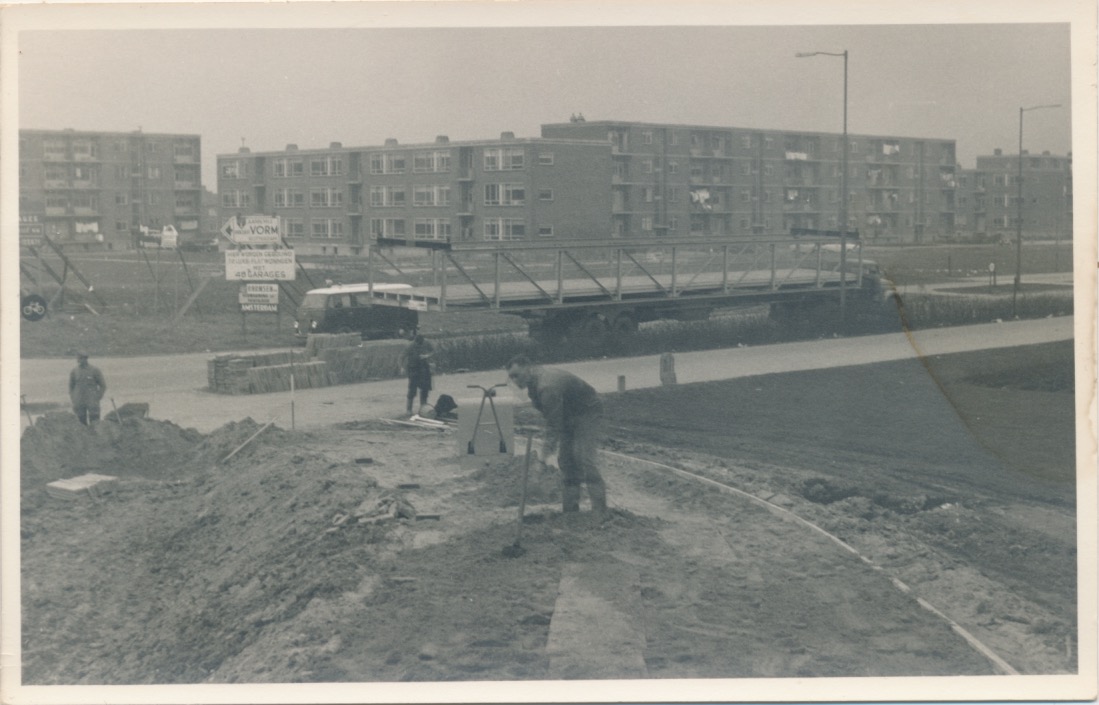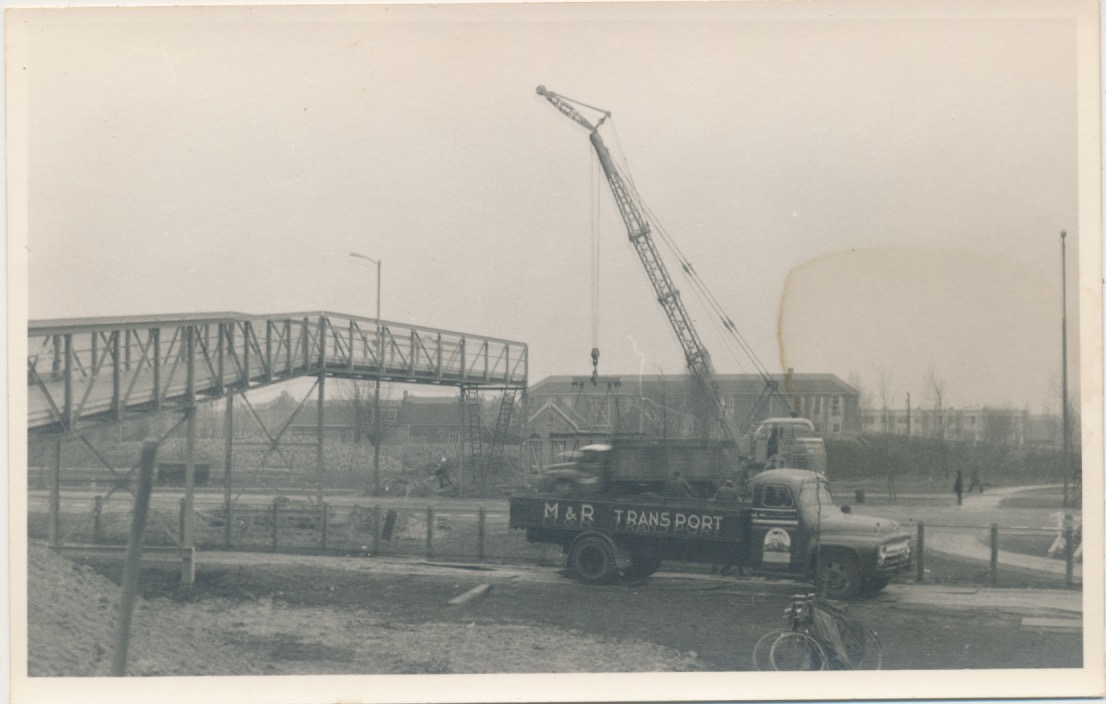 6165 serie van 14 fotokaarten inzake het aanbrengen van een loopbrug