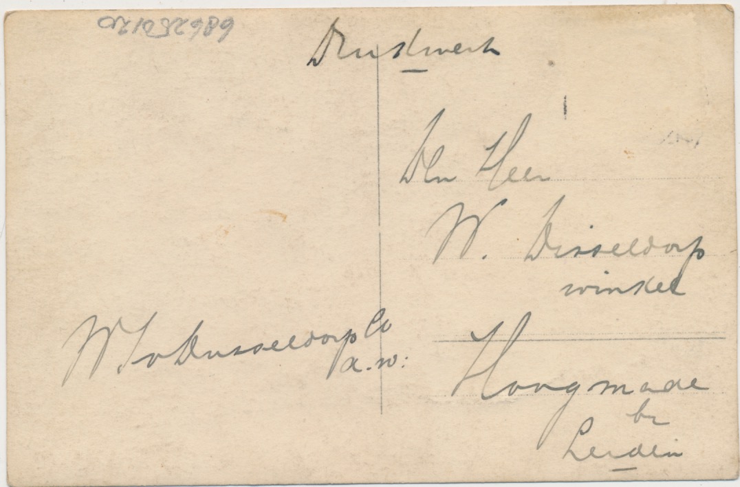 de kaart is verzonden door W.I. v. Dusseldorp naar W. Disseldorp, winkel, in Hoogmade bij Leiden
