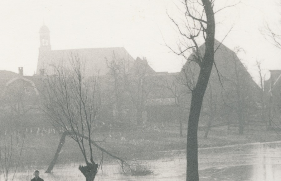 6305 bevroren plas met kerk op de achtergrond