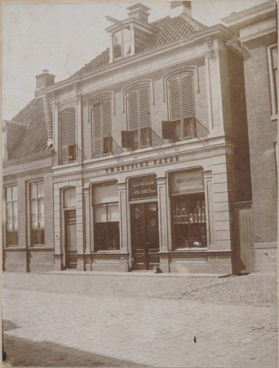 foto 1 is een staande foto van de Twentsche Bazar, de winkel van K.L.L. Muller, in sigaren enz, tabak en sigaren