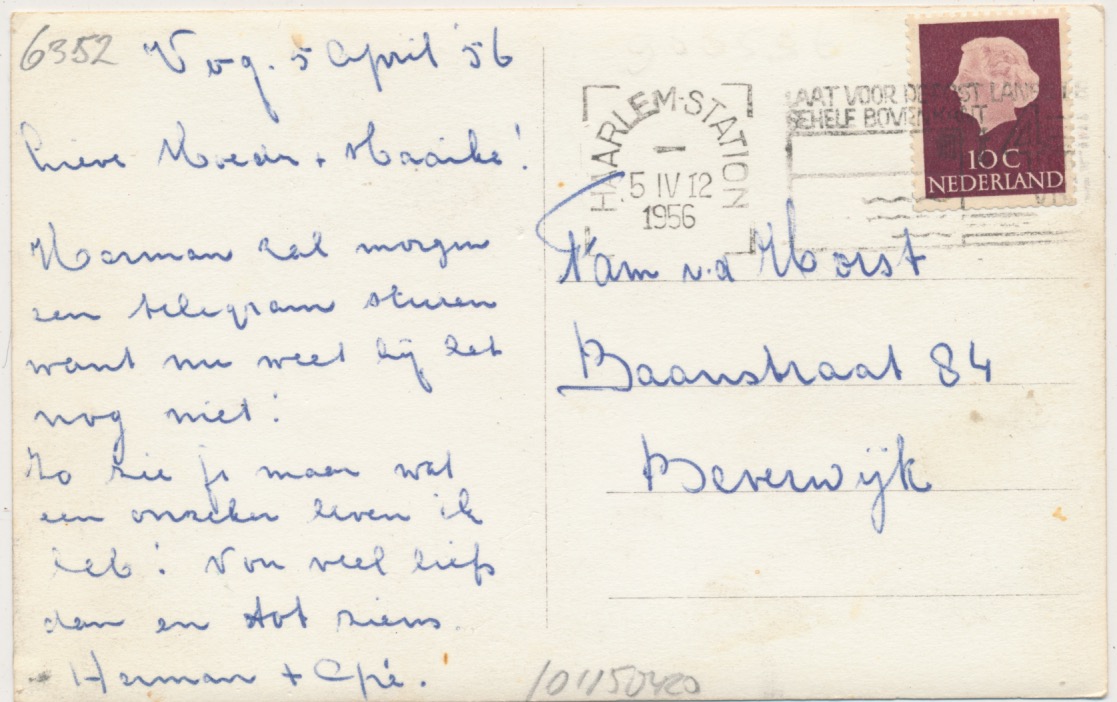 belijnde gelopen fotokaart, stempel Haarlem 1956