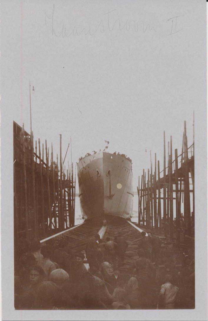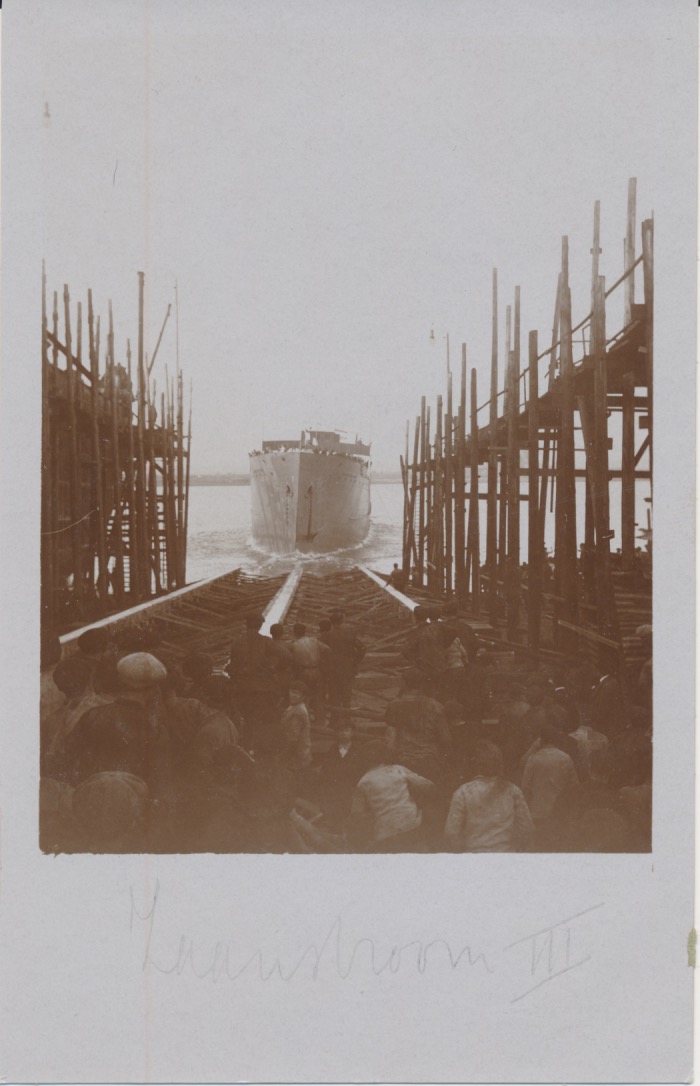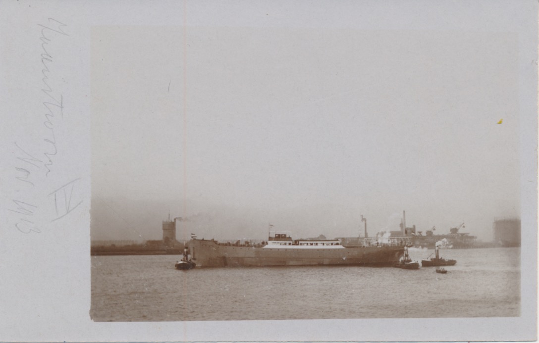 links op de achtergrond een watertoren en bij het achtersteven dezelfde gebouwen als op 6497