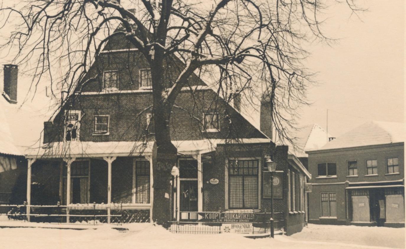 6502 hoekpand met emaille RVS-bord, verwijzing naar verkoopplek rookartikelen