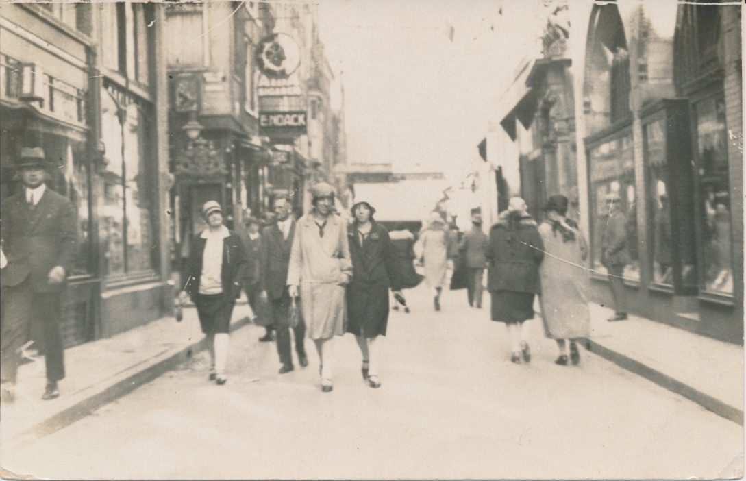 6531g straatgezicht met winkelend publiek, winkel E. Noack - JBI