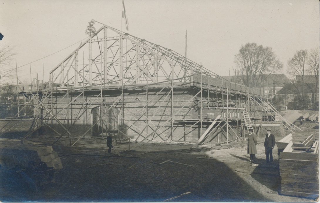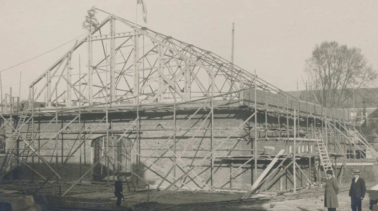 gaan ramen in het grote bouwdeel, terwijl er wel allerlei kozijnen rechts klaarliggen