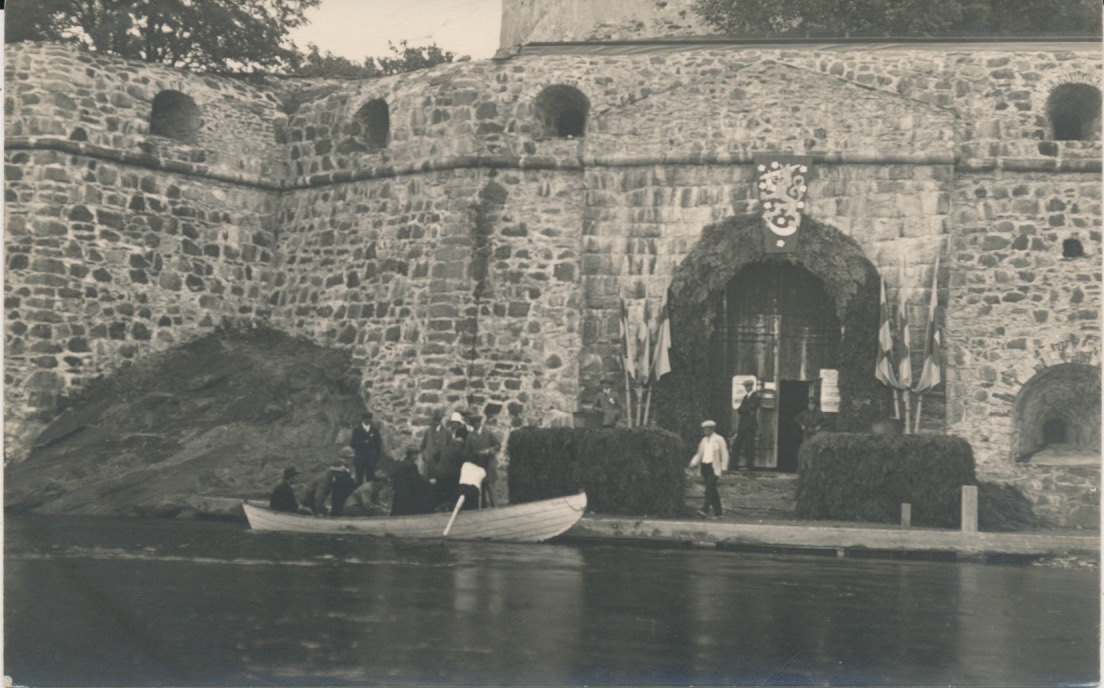 Het schild boven de poort laat het wapen van Finland zien: https://verzamel.fandom.com/nl/wiki/Wapen_van_Finland