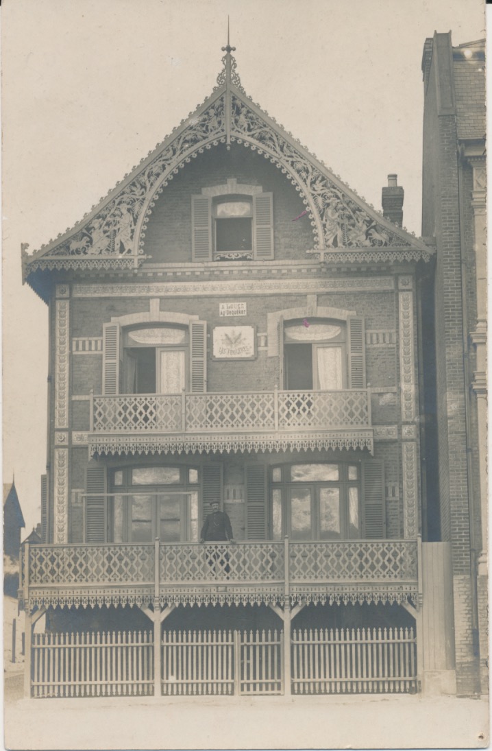 Berck inderdaad, aan de Esplanade, hier is een glimp te zien: https://www.delcampe.net/nl/verzameling ... 01897.html (net links van het grote pand rechts). Vergelijk de geveldetails van het aangrenzende pand rechts op het zoekplaatje, die met het grote pand corresponderen.