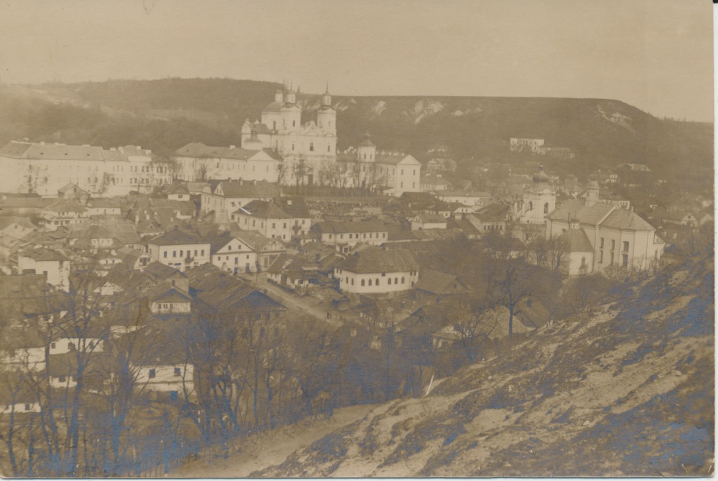 Met de Jezuïetenkerk (HH. Ignatius van Loyola en Stanislaus Kostka) op de achtergrond (https://goo.gl/maps/5QivDv4g7wjaNuyM8) en de Sint Nicolaas rechts (even omdraaien op streetview). Gezien vanaf de kasteelheuvel (Bona).