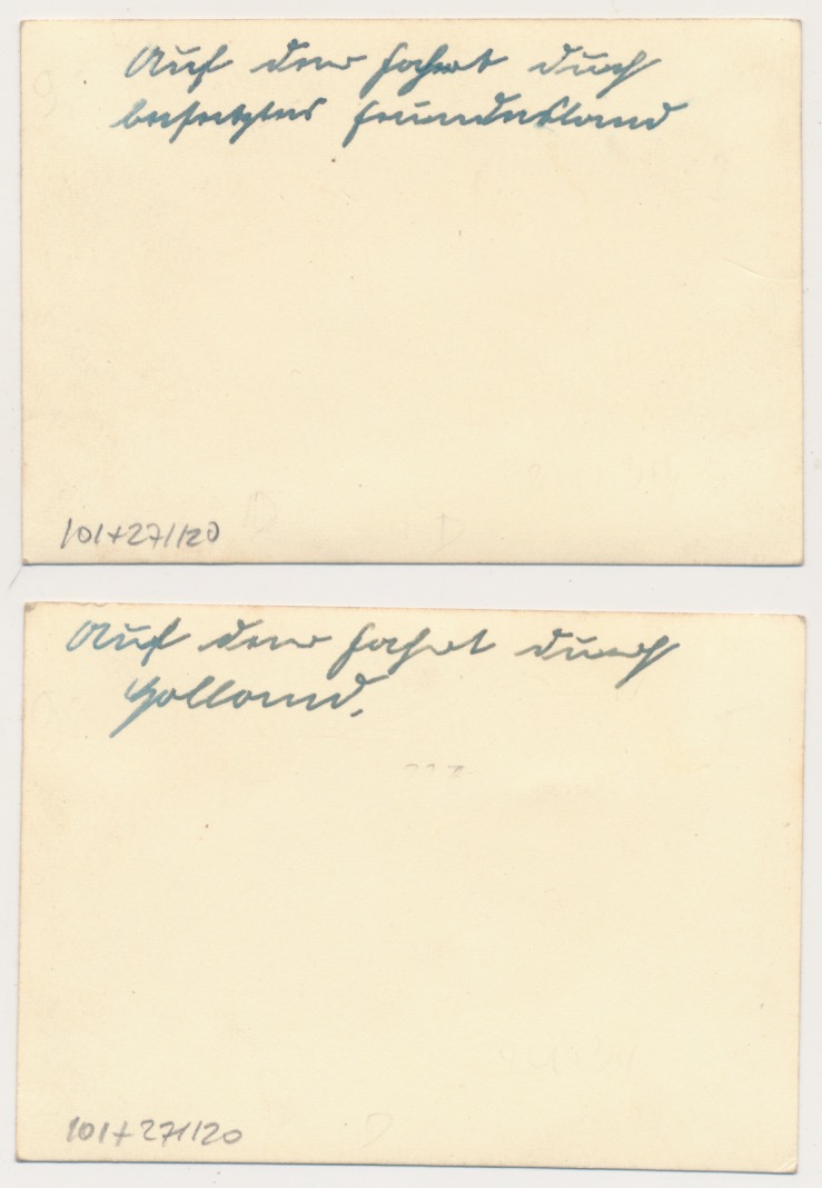 2 fotootjes ca. 9 bij 6 cm., waarvan eentje in het geheel geen beeldinformatie levert