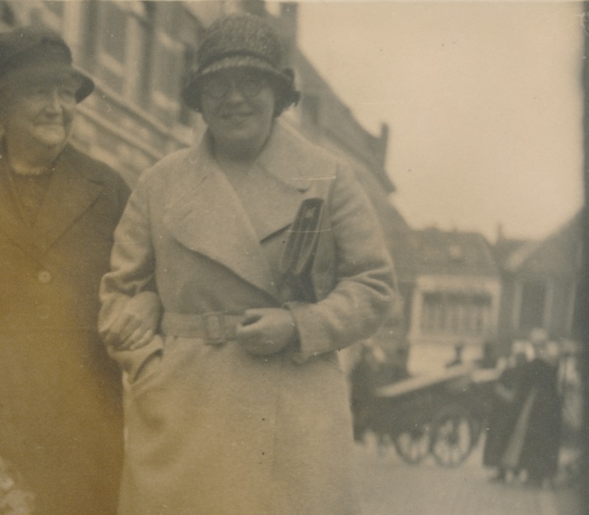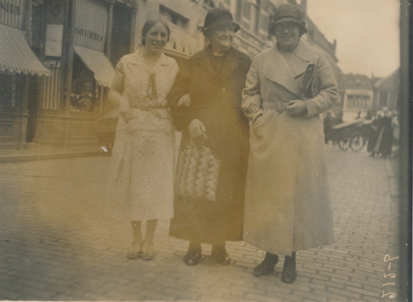 Rechts op de achtergrond: Scheveningse klederdracht?