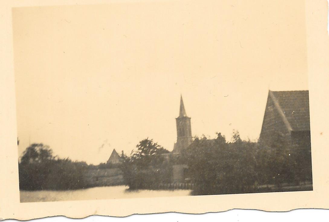 Plaats aan water met kerk. Zou Warmond moeten zijn, kenner herkent dat niet als Warmond