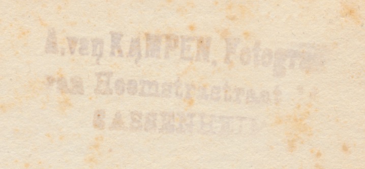 op de achterkant een stempeltje met: A. van Kampen, Fotograaf Van Heemstrastraat, Sassenheim