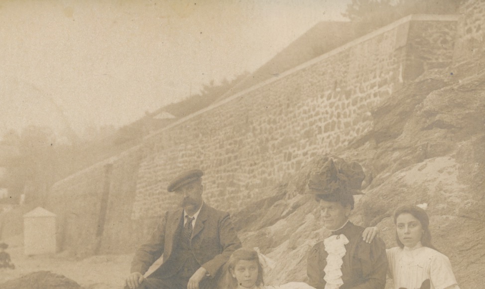 Re: 6838 familie voor muur, links vage bebouwing