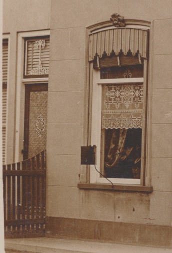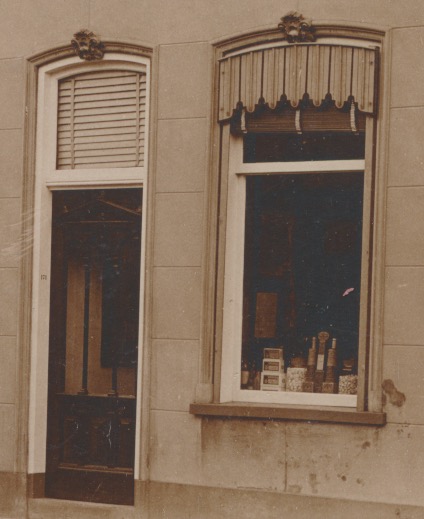 achter één van de ramen wordt iets uitgestald, wellicht ter verkoop aangeboden